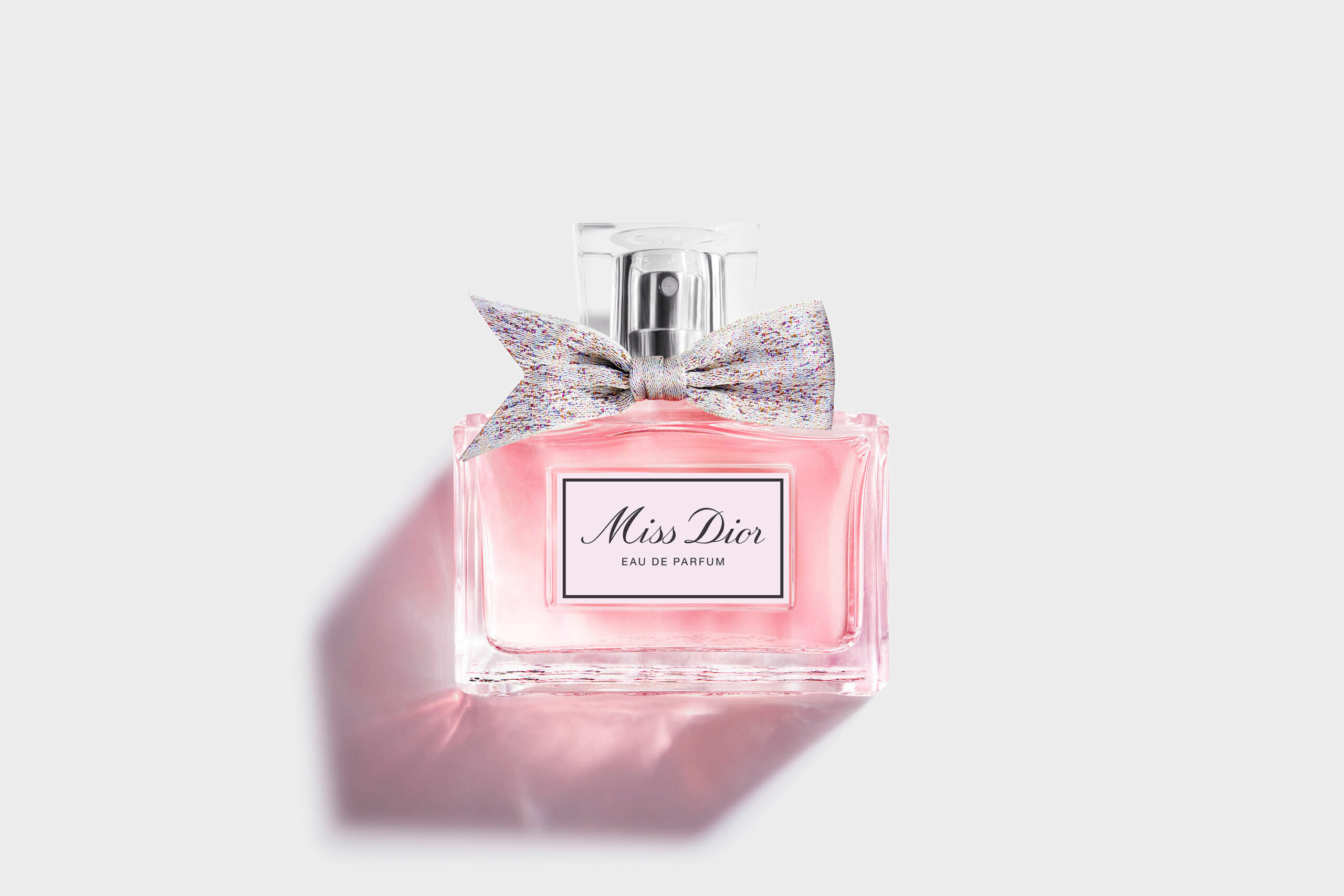 The couturier’s fragrance, Miss Dior eau de parfum, is adorned with a new poignard fabric bow?a few centimeters of pure luxury is tied around the bottle’s neck. The new Miss Dior Eau de Parfum now boasts a vibrant, pointillist haute couture bow, with a truly unique assortment of florals. Beneath the bottle, the emblematic Miss Dior houndstooth motif is engraved in the glass.