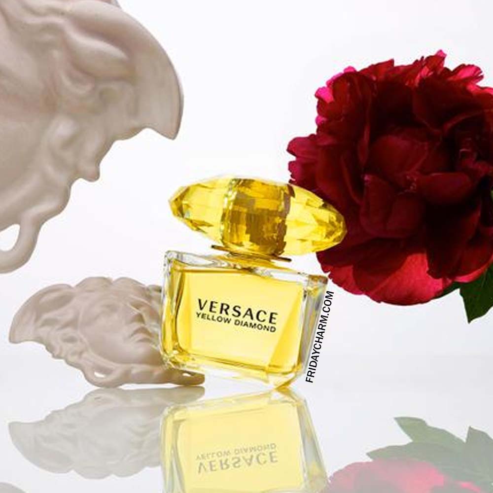 Yellow diamond is pure as sunlight, an extraordinary bright hue that radiates with a fiery intensity, sparkling the way that only a diamond can. Pure sensuality, pure transparency, pure light: once more an authentic jewel of rare beauty unveiled in a fresh and vivid floral perfume a new, captivating and voluptuous fragrance of true femininity, confident in her charm, in harmony with the unmistakable glamour of Versace. The bottle is a unique creation, the luxury of clean geometry. A design of timeless elegance, an exquisite modern piece of unrivalled beauty. Essential lines, precisely placed facets to maximize colour and brilliance. The very elegant and faceted crystal cap seals a bouquet of extreme pureness.